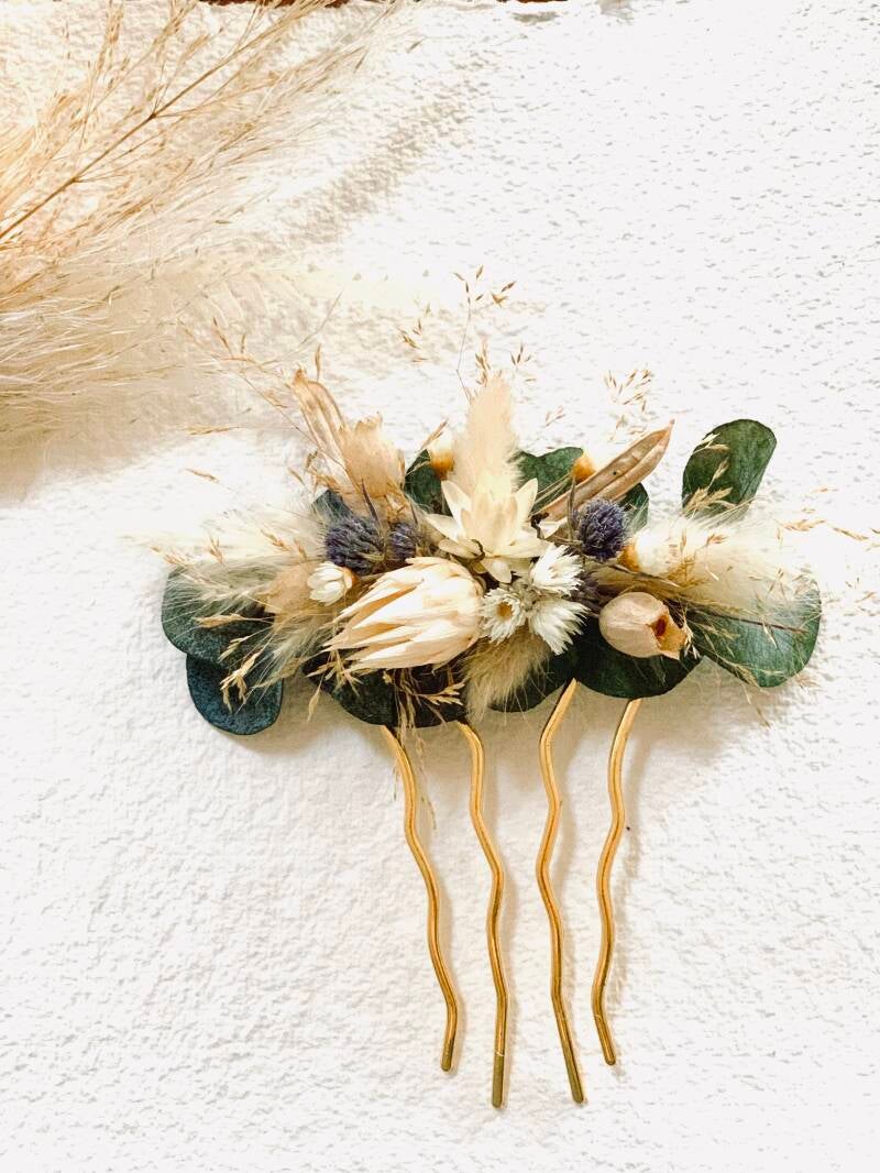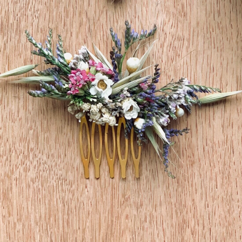Die Haarkämme und Kränze aus echten Blüten sind eine schöne Erinnerung und in getrockneter Form hast du noch lange Freude damit...